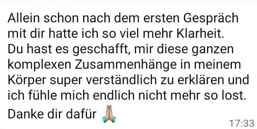 Frauen, die mit mir zusammenarbeiten, verstehen zum ersten Mal, was wirklich in ihrem Körper passiert und erleben, wie viel leichter ihr Alltag dadurch wird.